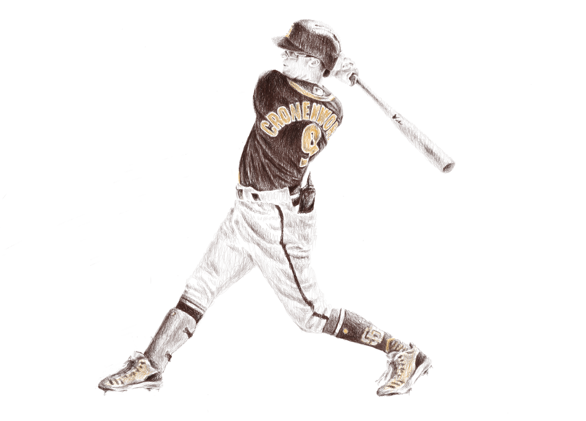 The SD Padres logo is featured on Cronenworth's sock.